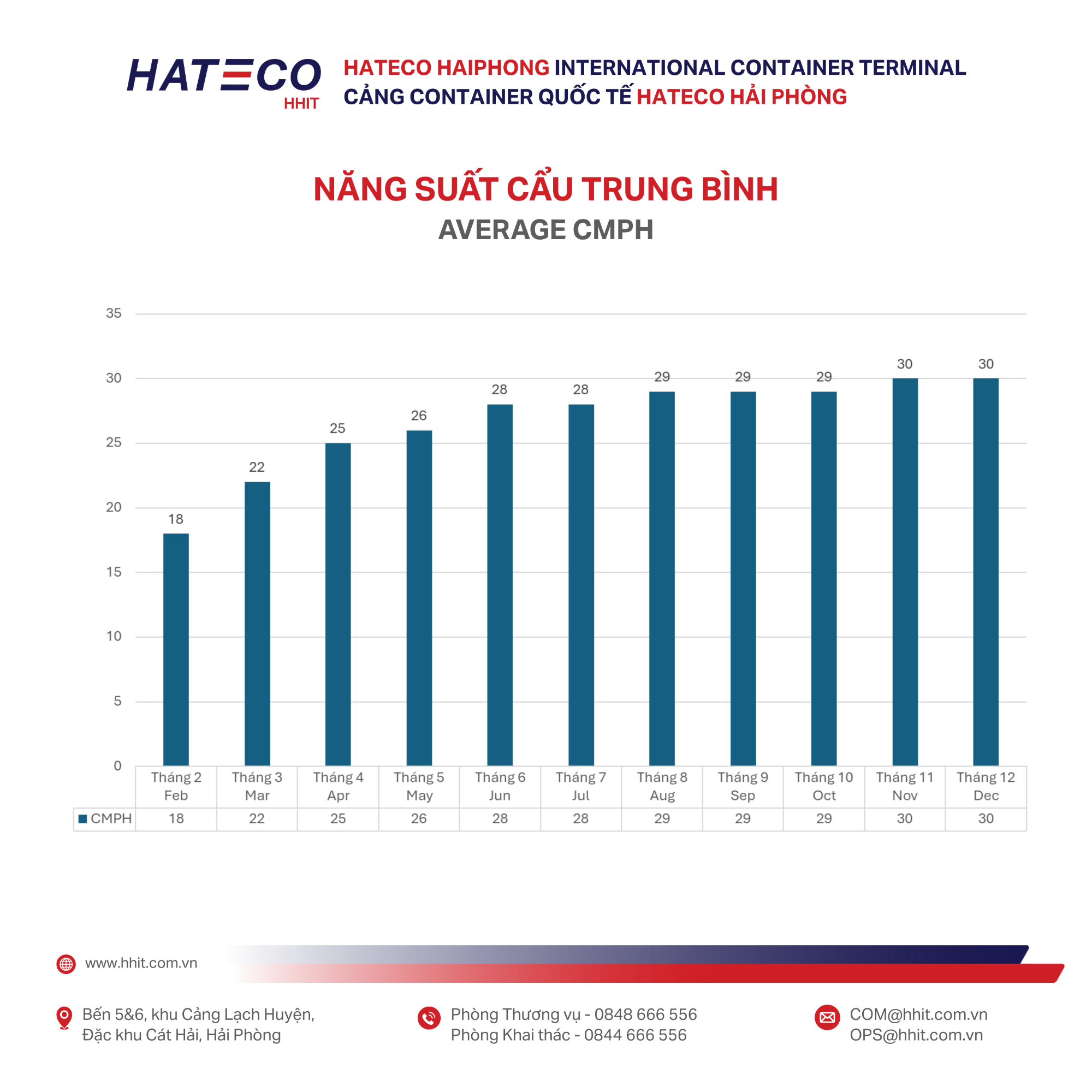 Outstanding Productivity: The average CMPH reached 30 moves/hour (with a peak of 42 moves/hour), demonstrating professional, stable and efficient operational capability.