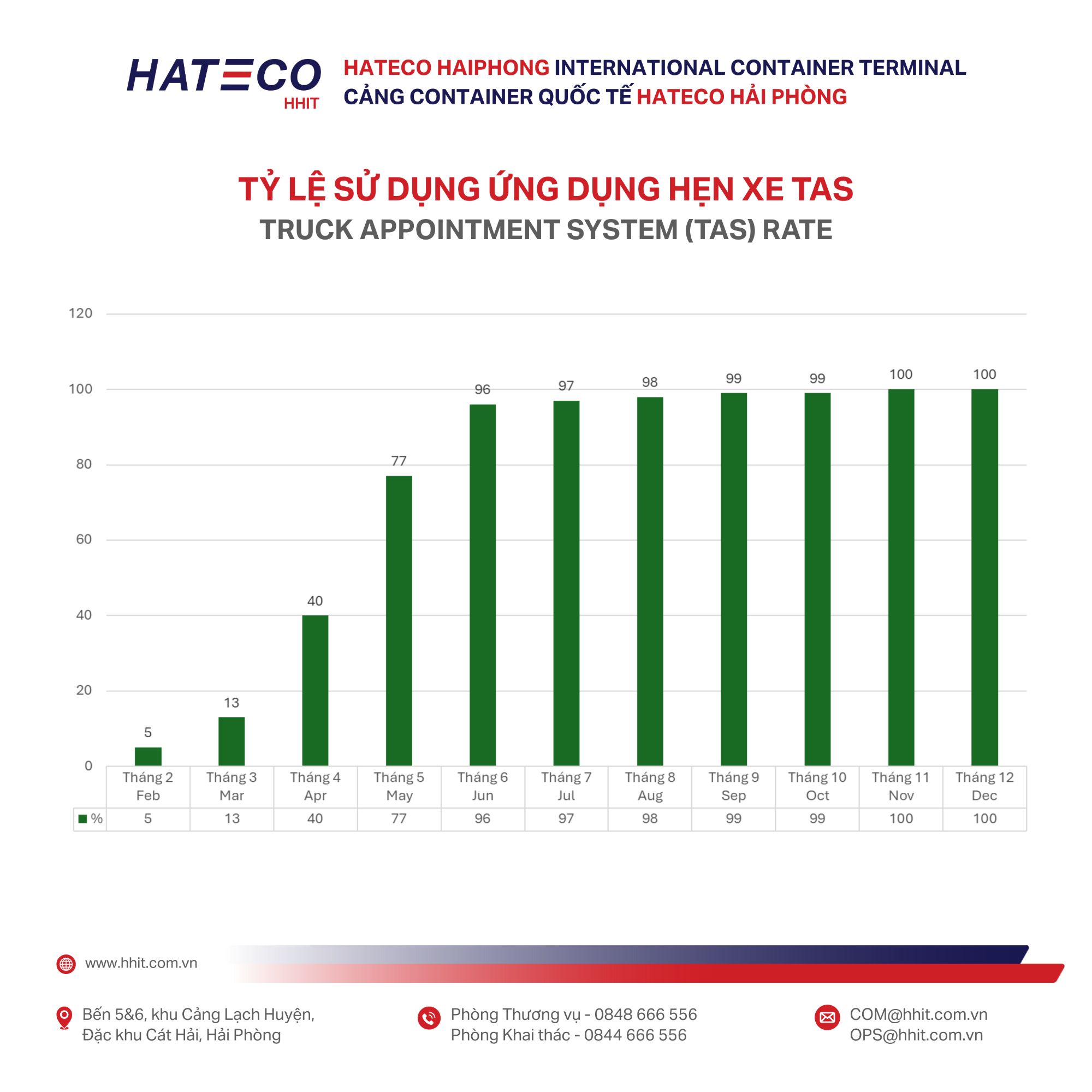 Pioneering Digitalization & Sustainable Development: The TAS using achieved a 100% rate, reducing truck turnaround time to an exceptionally low 16 minutes (compared to the market average of 35 minutes). This helps customers significantly save time and costs while cutting emissions to protect the environment.